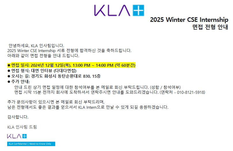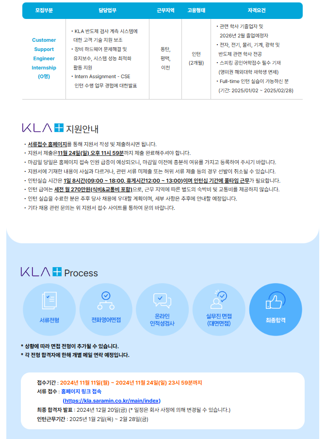 오늘은 KLA 인턴전형 후기를 남겨보겠습니다!