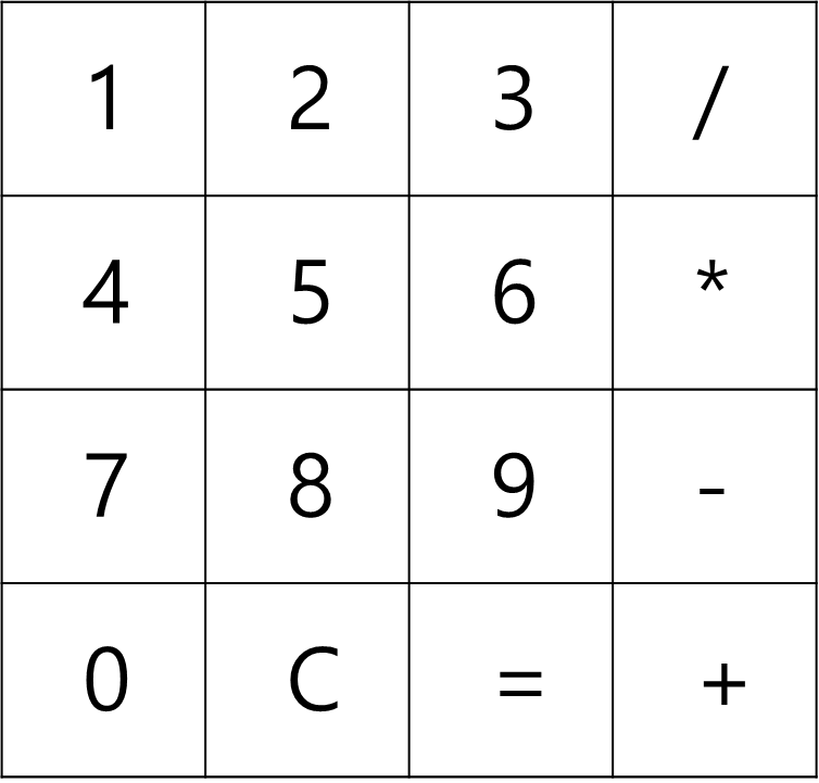 계산기 작동 시 네자리 수인 1234를 입력하기 위해서는 다음과 같이 출력되어야 합니다.