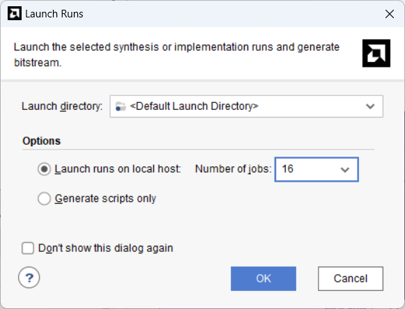 Wrapper 파일이 생성되었으면 Generate Bitstream을 수행합니다. 이 때 나타나는 Numbers of jobs는 컴퓨터의 리소스를 얼마나 빌드에 할당할 지 선택하는 옵션입니다. 가능한 경우 최댓값을 설정하는 것이 좋습니다.