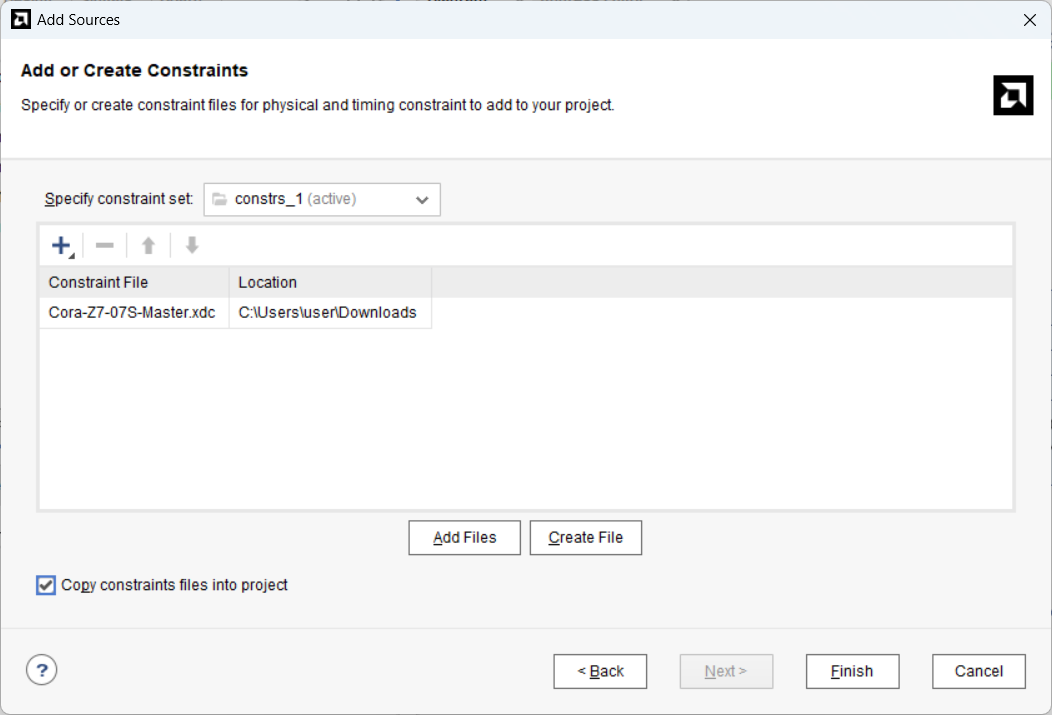 Sources - Add - Add or create constraints에서 Master.xdc 추가합니다.