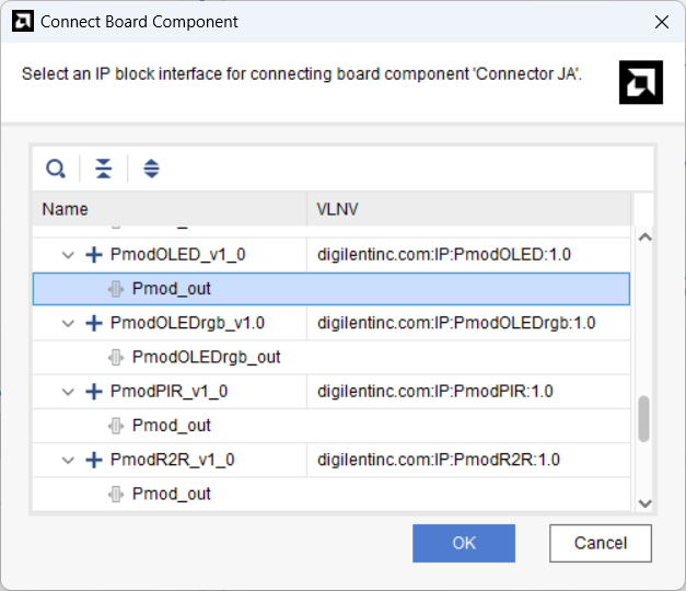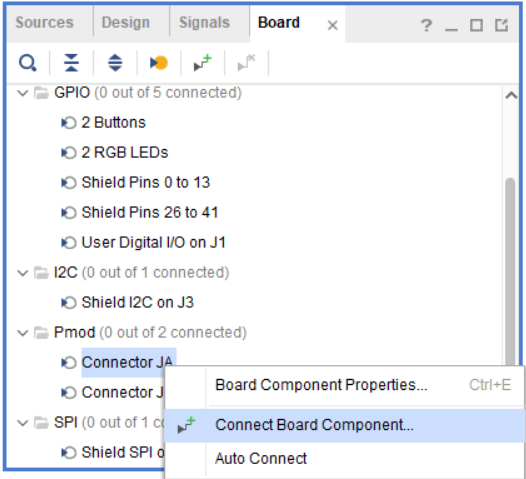 Board 탭에서 Connector JA 우클릭 - Connect Board Component 선택한 뒤 Pmod OLED를 선택합니다.