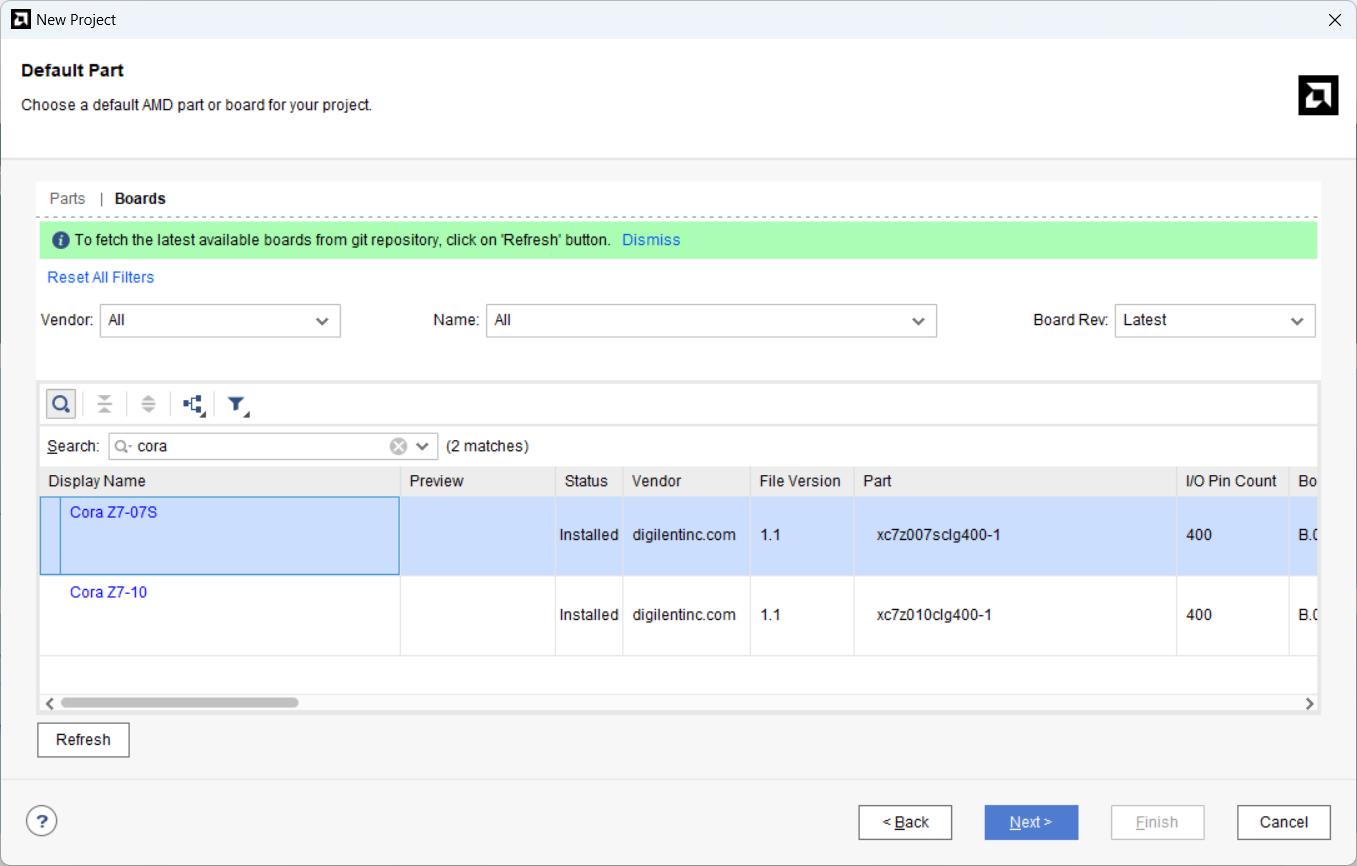 \vivado-boards-master\vivado-boards-master\new\board_files 내의 모든 폴더를 다음의 경로에 복사합니다C:\Xilinx\Vivado\2023.2\data\xhub\boards\XilinxBoardStore\boards