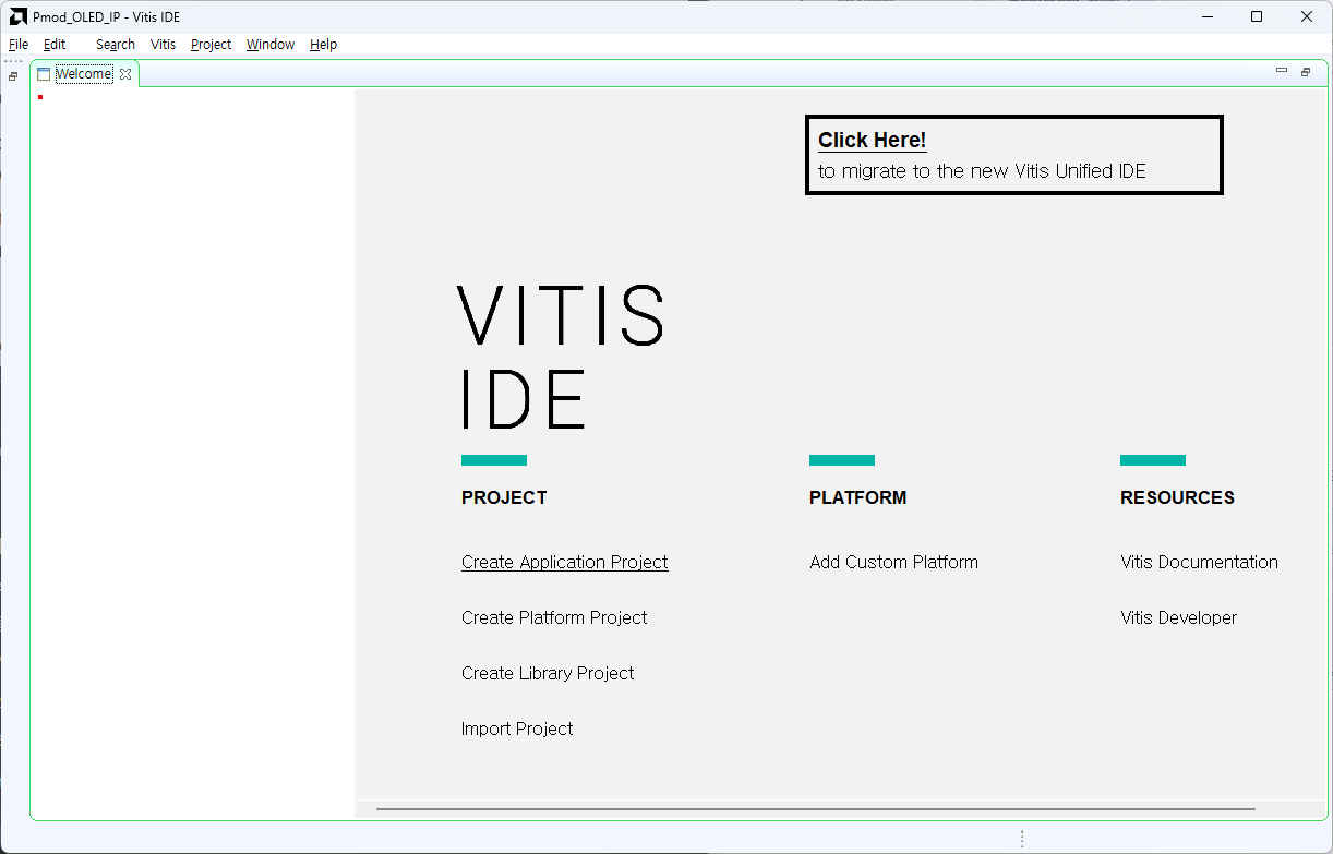 XSA 파일을 내보낸 위치를 기억한 후 Vitis를 실행합니다.