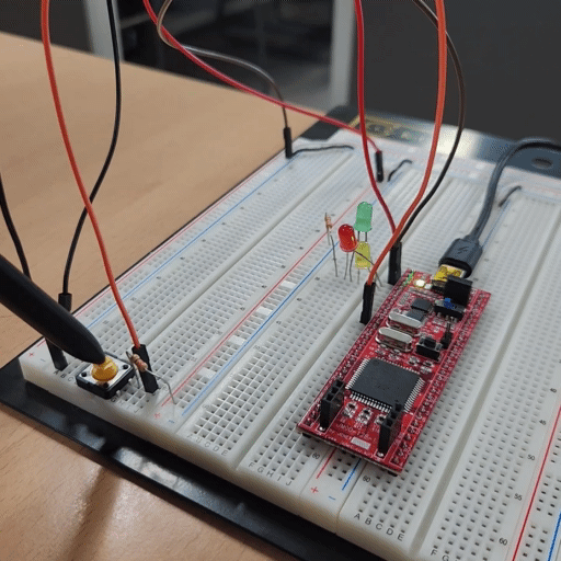 - 수정한 메인함수(스위치가 눌릴 때 다음 LED를 점멸하는 코드)