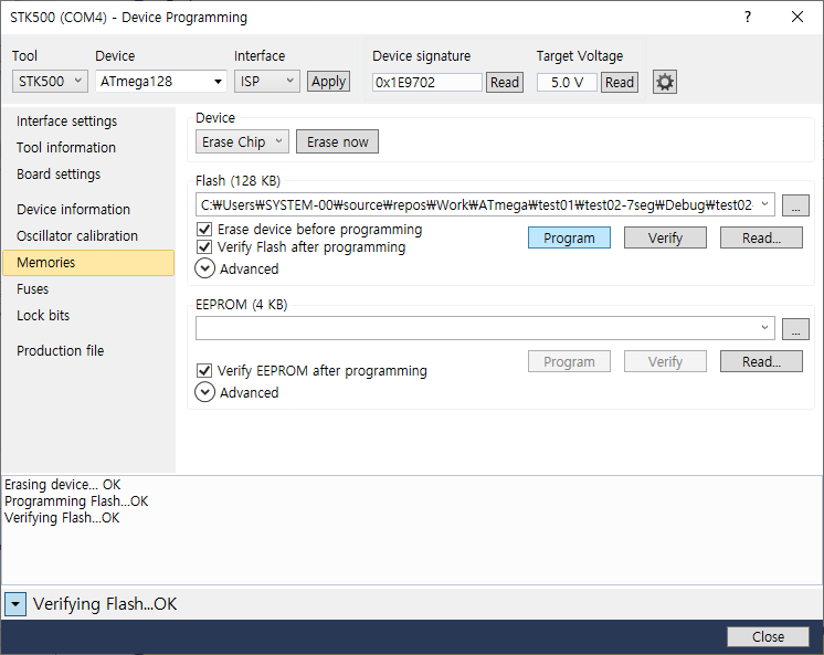 7. ATmega 128 선택 후 OK