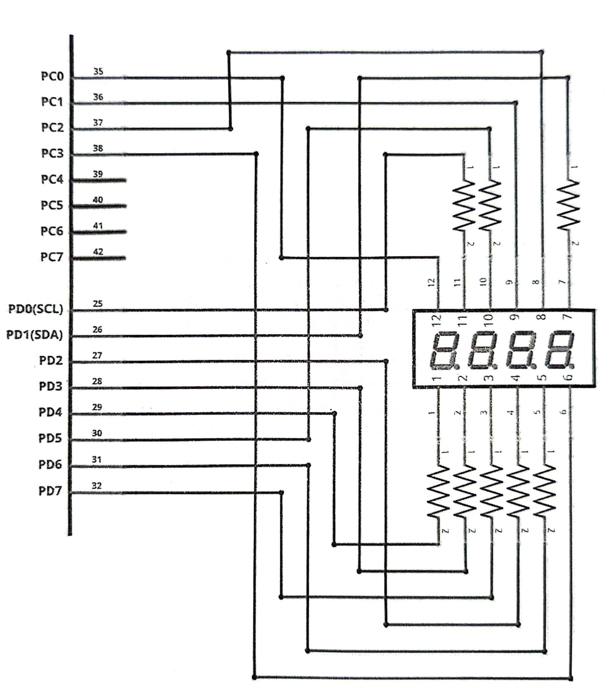 - 2개의 공통핀과 8개의 세그먼트 제어핀으로 구성