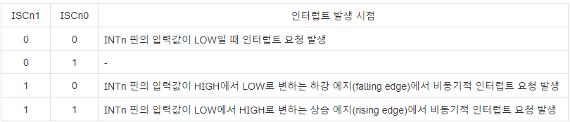 - 인터럽트 발생 시점 결정(INT0~INT3)