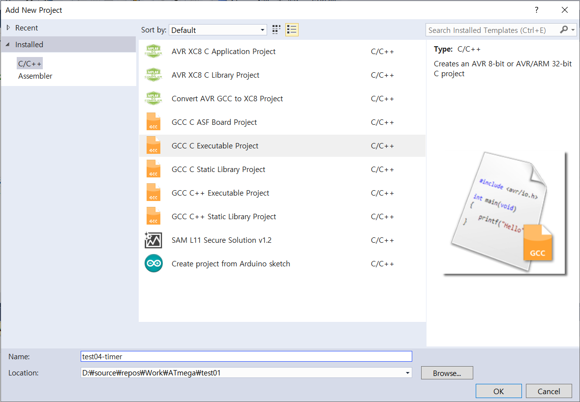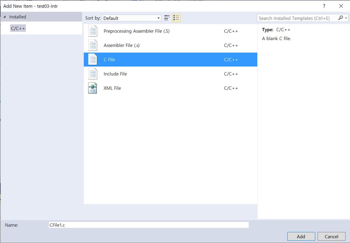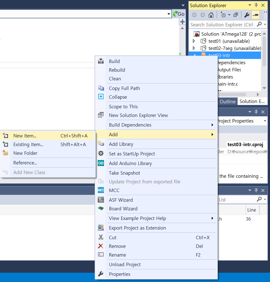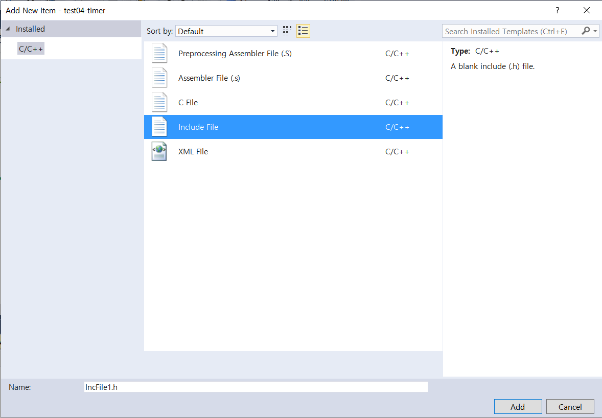 8. 헤더파일 만들기: test04-timer 우클릭 - add- file - myHeader.h파일 생성