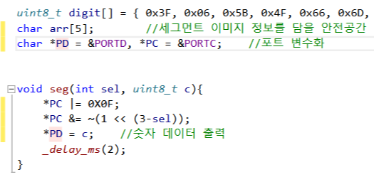 [Segment.c 수정]: PORTC와 PORTD를 포인터 변수로 바꿔 입력