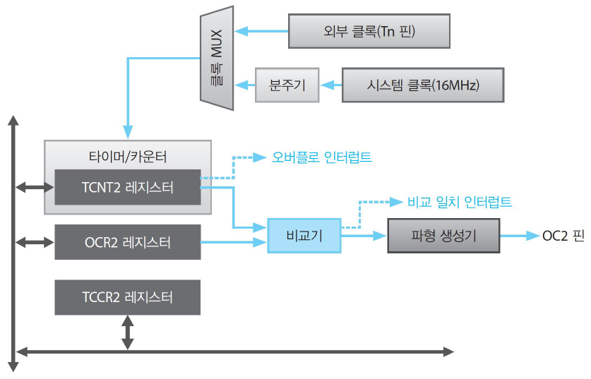 1. 타이머 2를 사용하는 경우, 다음과 같이 변경