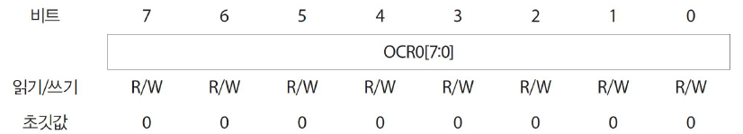 - TCNTn값과 비교할 값을 OCRn 레지스터에 설정
