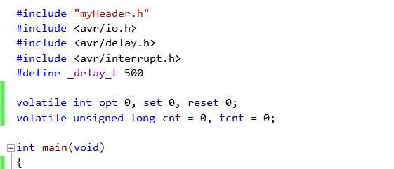 3. opt, set, reset설정값이 버튼에 따라 변경되도록 코드 상단에 volatile로 변수 선언