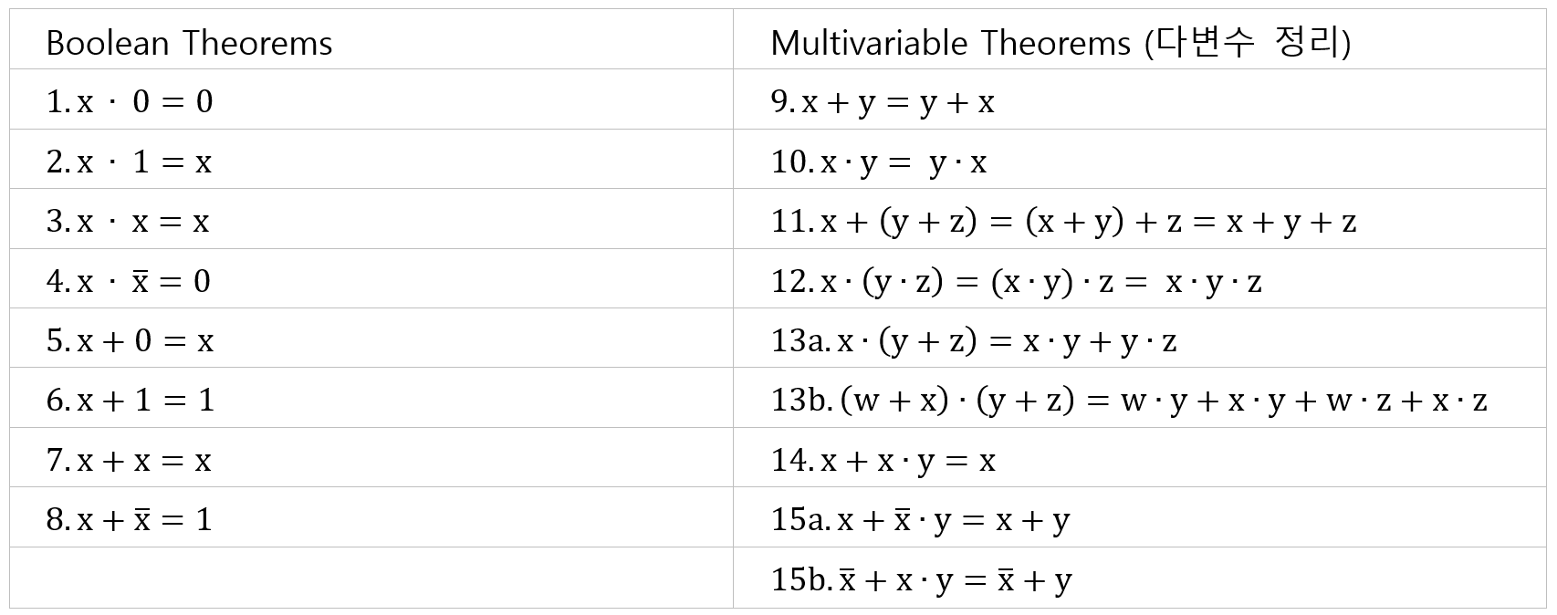 - 연산기호를 AND에서 OR로, OR에서 AND로 변환