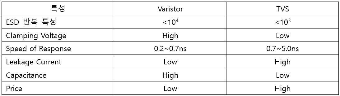 - IC 내부(Chip Level)에서 주로 사용 - TVS(Transient Voltage Suppression)