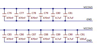 - IC쪽 회로에 각각 캐패시터 설치 -> Noise Decoupling -> 이러한 캐패시터를 Decoupling Capacitor(De-Cap)이라 함