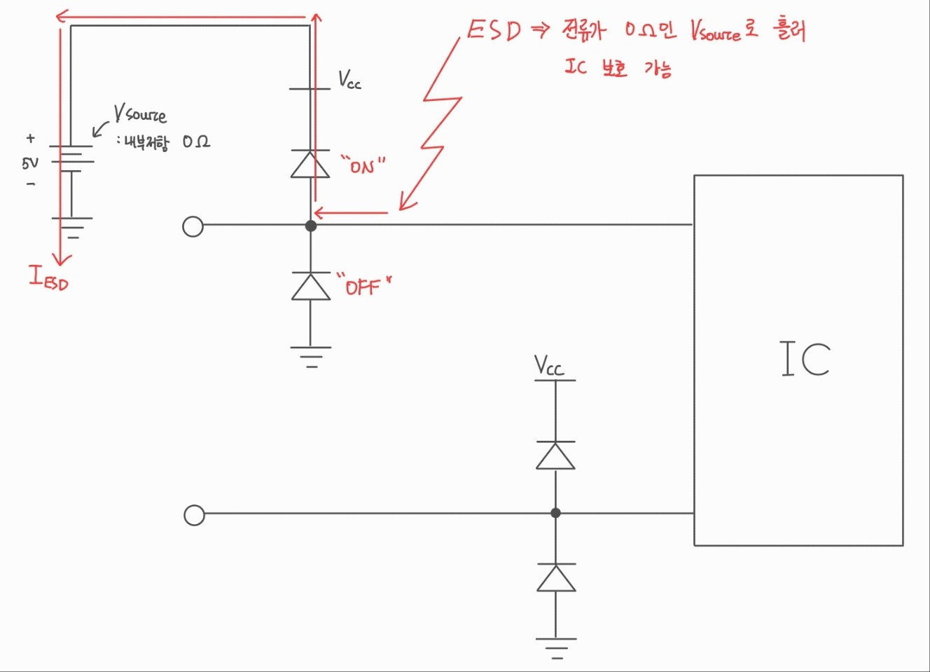 - ESD 대책용 다이오드는 IC내부에 기본적으로 내장