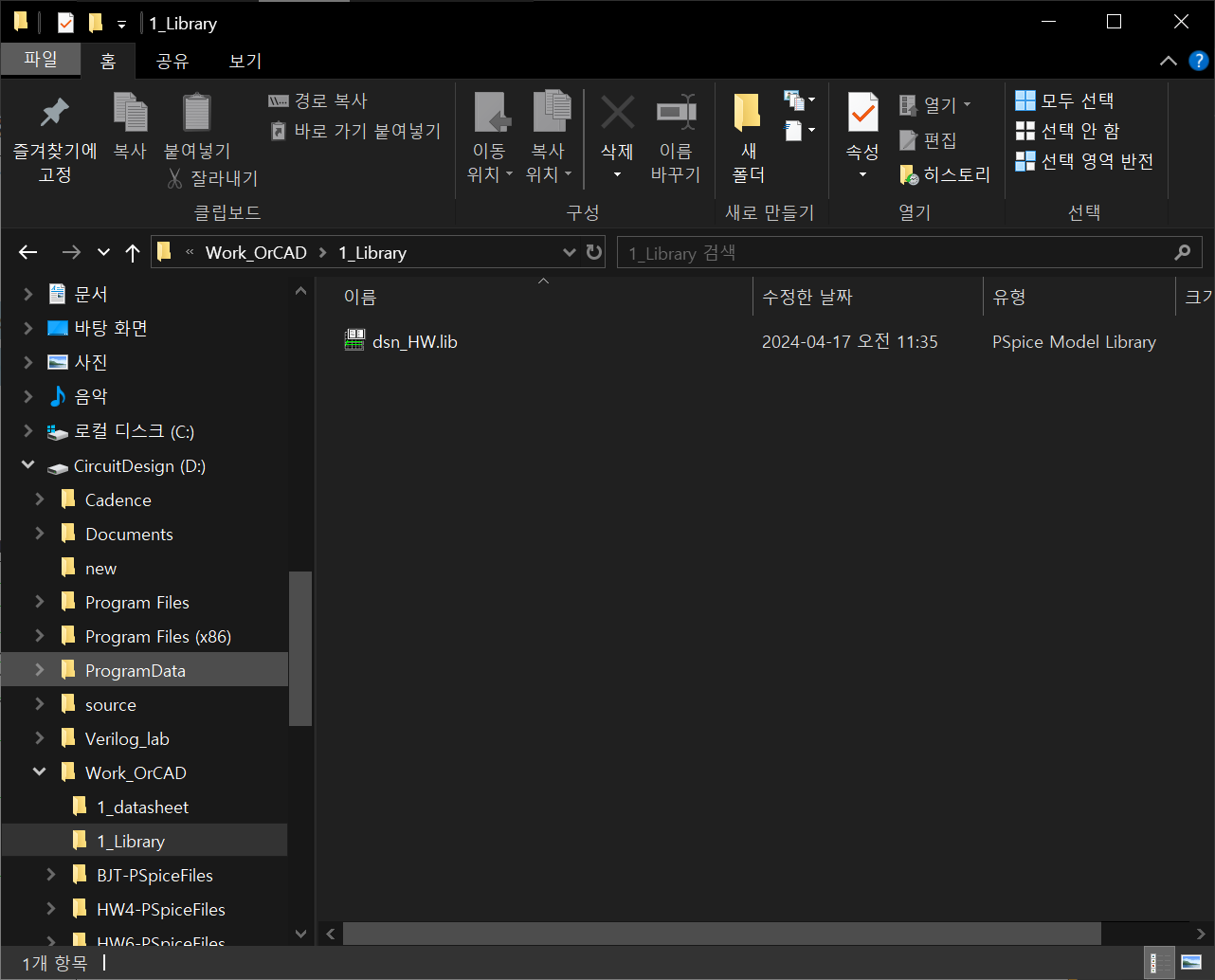 2. Work_OrCAD에 폴더 두 개 생성 후 1_datasheet, 1_Library로 폴더 이름 설정