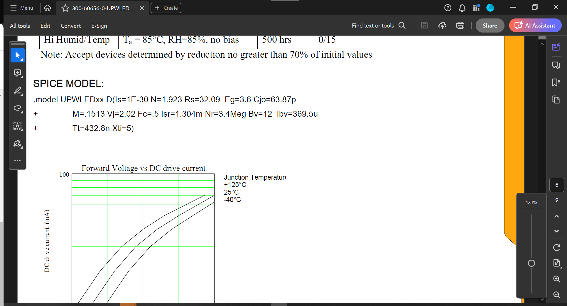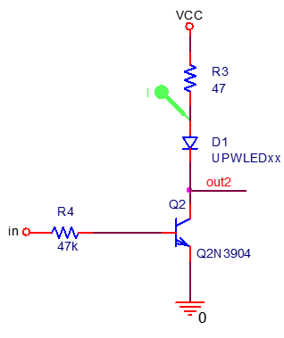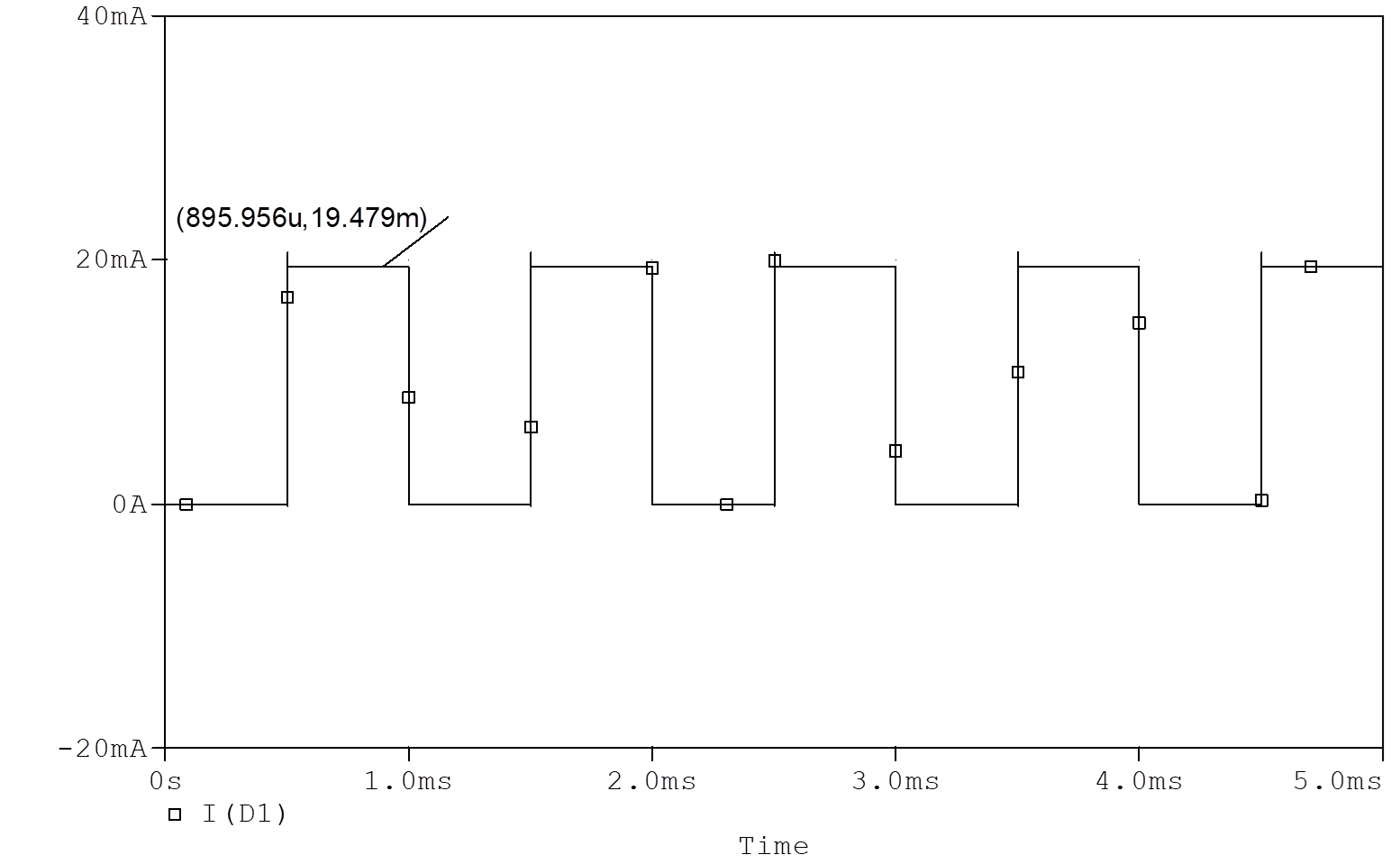 15. 저항 값을 변경하기 위해 Id가 20mA일 때 VF는 3.6V, V_sat은 0.13V이므로 R_D=(VCC-(VF+V_sat))/I_D로 50 구하고 이에 가까운 표준저항 47옴 설치하고 시뮬레이션 실행 시 I_D가 20mA가 나오지 않게 됨