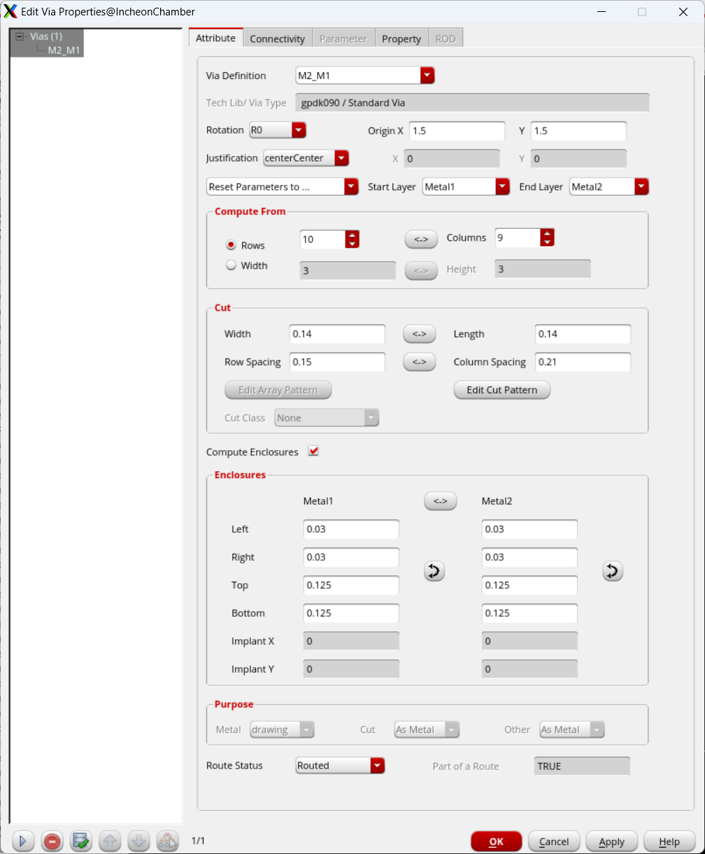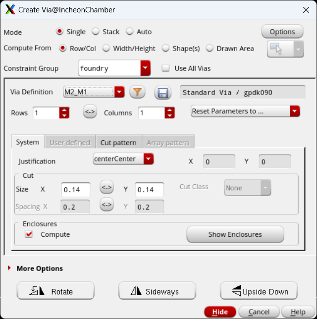 2. O 눌러서 Create Via 열고 foundry Group의 M2_M1 불러오기