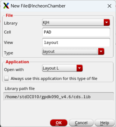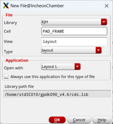 4. PAD_FRAME으로 새 Layout Cellview 생성