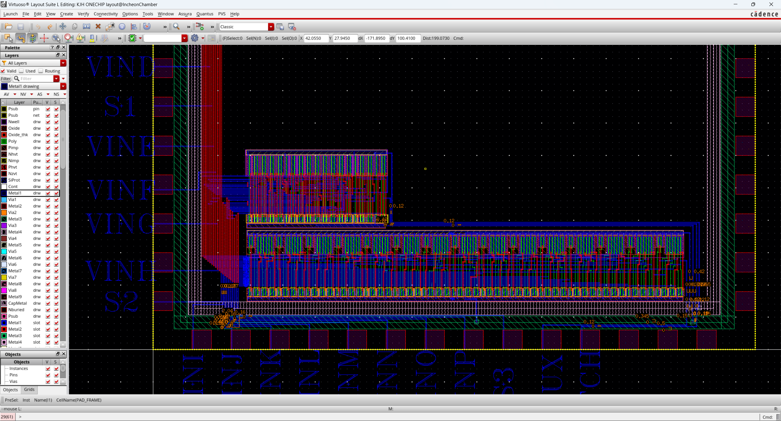 - layout 참고사항: Metal끼리 겹치는 경우에는 홀수끼리, 짝수끼리 겹치기 -> 거리가 멀어져 기생 캐퍼시턴스가 감소하기 때문