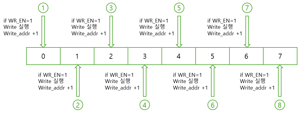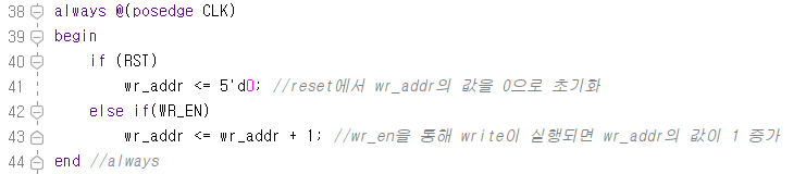 wr_addr <= wr_addr + 1; //wr_en을 통해 write이 실행되면 wr_addr의 값이 1 증가
