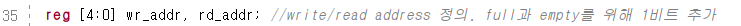 reg [4:0] wr_addr, rd_addr; //write/read address 정의. full과 empty를 위해 msb에 1비트 추가