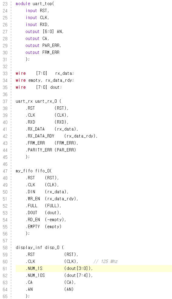 3. my_fifo.v 의 my_fifo모듈 인스턴스화 및 포트 매핑