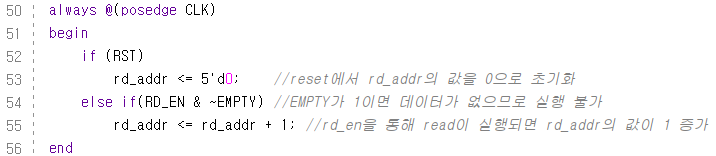 else if(RD_EN & ~EMPTY) //EMPTY가 1이면 데이터가 없으므로 실행 불가