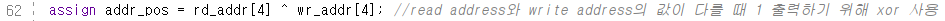 assign addr_pos = rd_addr[4] ^ wr_addr[4]; //read address와 write address의 값이 다를 때 1 출력하기 위해 xor 사용