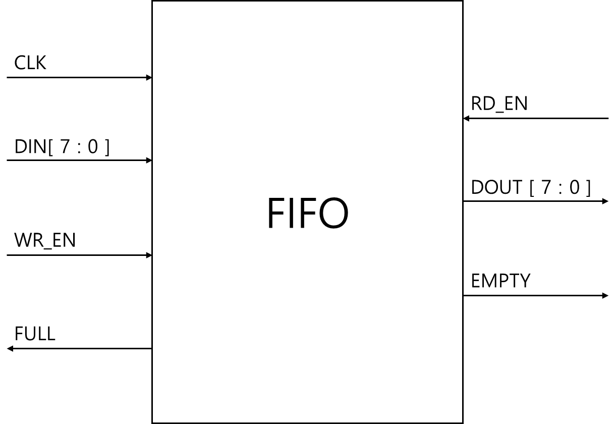 - RD_EN(ReaD_ENable): RD_EN이 1이면 CLK에 맞춰 Read 동작 실행, Read_Address를 1씩 증가