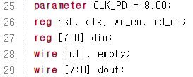 2. 포트 매핑을 하기 위해 변수 설정(my_fifo.v의 input은 reg로, output은 wire로 선언)