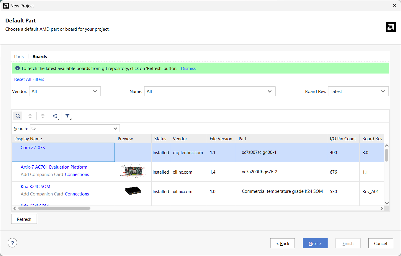 1. my_axi_test 프로젝트 생성 (board는 cora z7 선택)