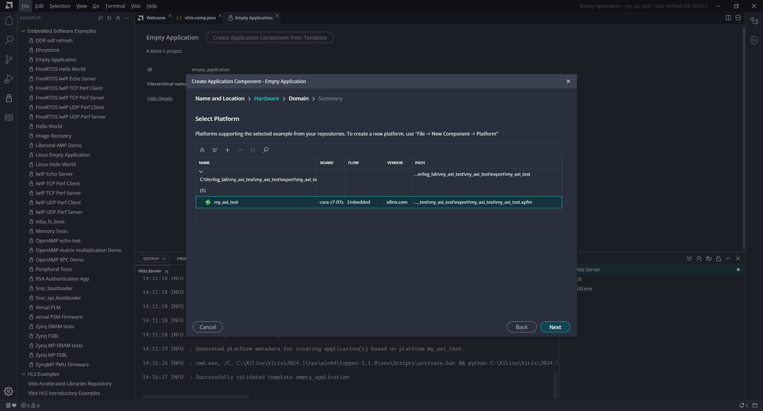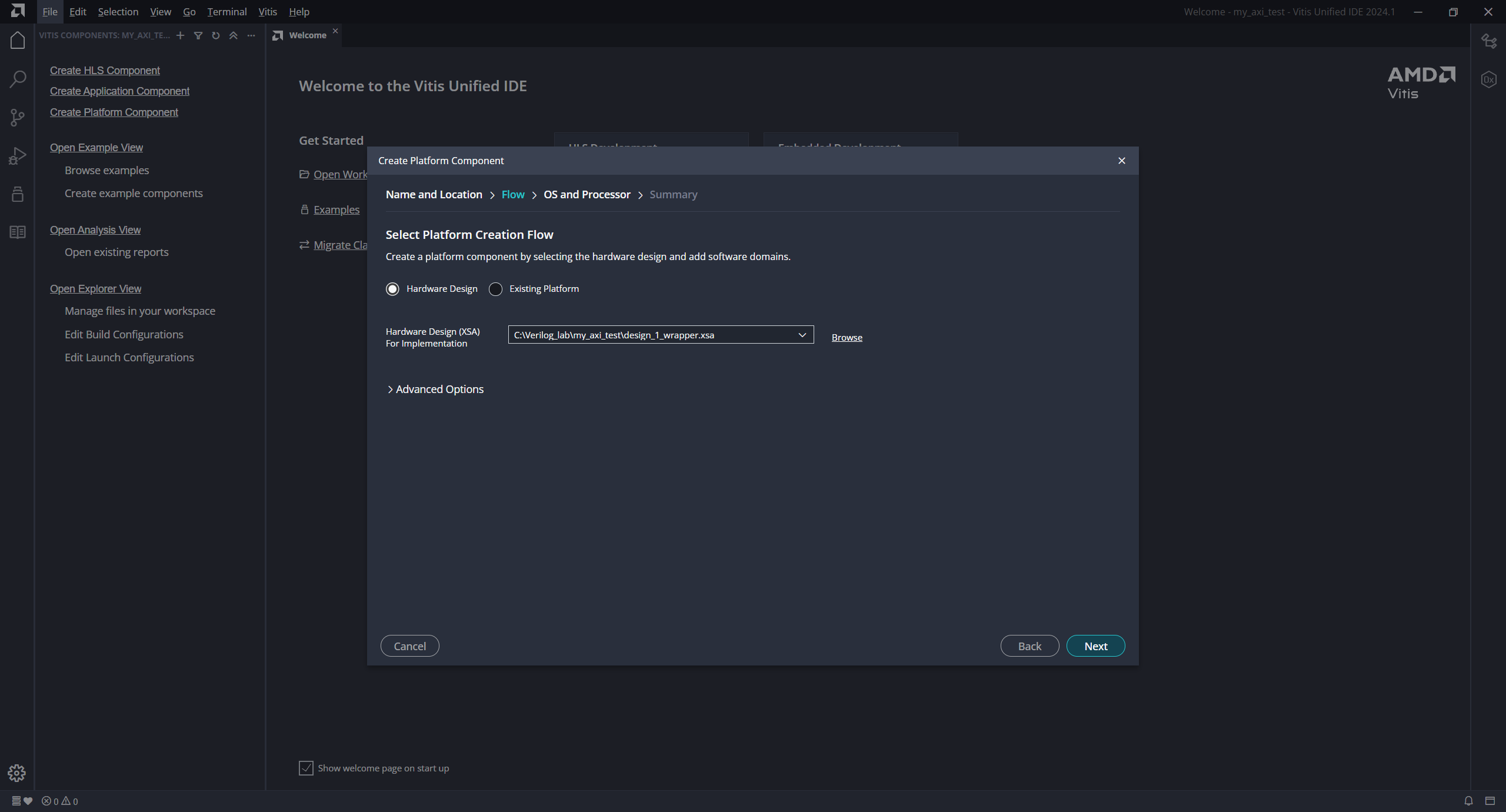 13. Open Workspace: 위에서 생성한 프로젝트인 my_axi_test 디렉토리로 설정