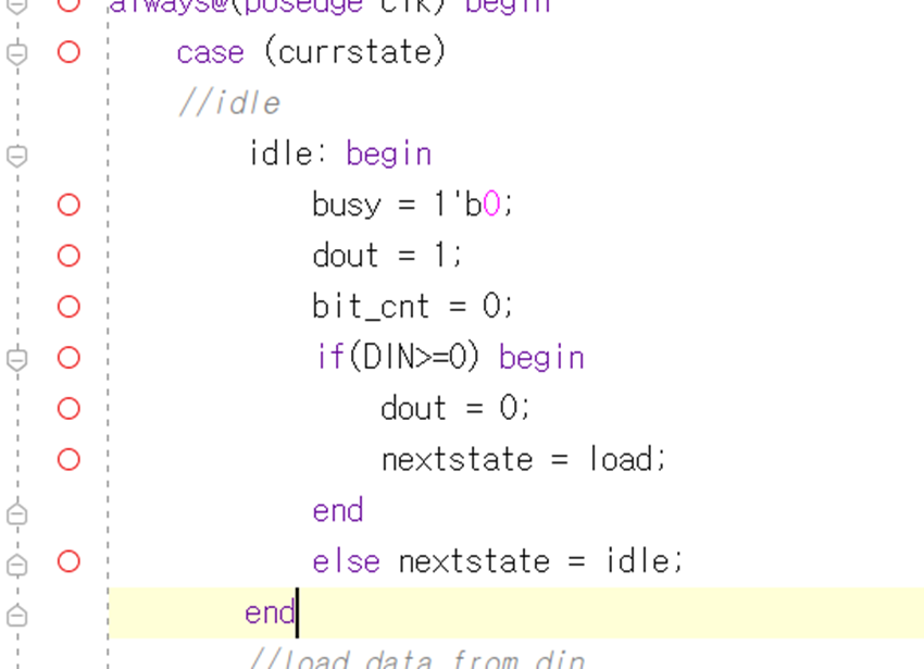- idle에서 dout을 1로 초기화하고, 위의 조건에서만 load를 실행하도록 조건을 변경하였다.