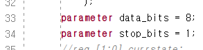 - UART에서는 최대 9비트의 데이터를 전달할 수 있고, Parity Bit는 1Bit와 2Bit 두 가지 방법으로 사용 가능하므로, 이를 자유롭게 변경할 수 있도록 다음과 같이 parameter을 선언하고 실행 조건을 변경했다.