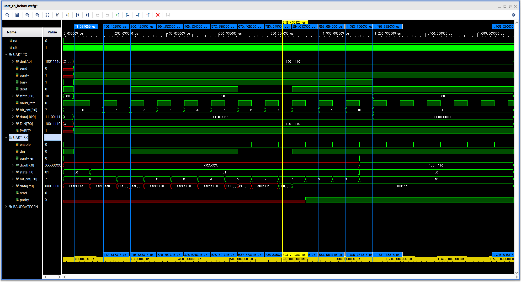 그 결과는 위와 같이 나타났다. parity_err 신호가 0으로 유지되어야 하는데, 상태 변화 시 잠깐 1로 나타나는 오류가 발생했다.